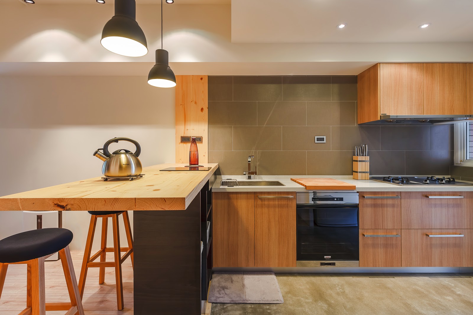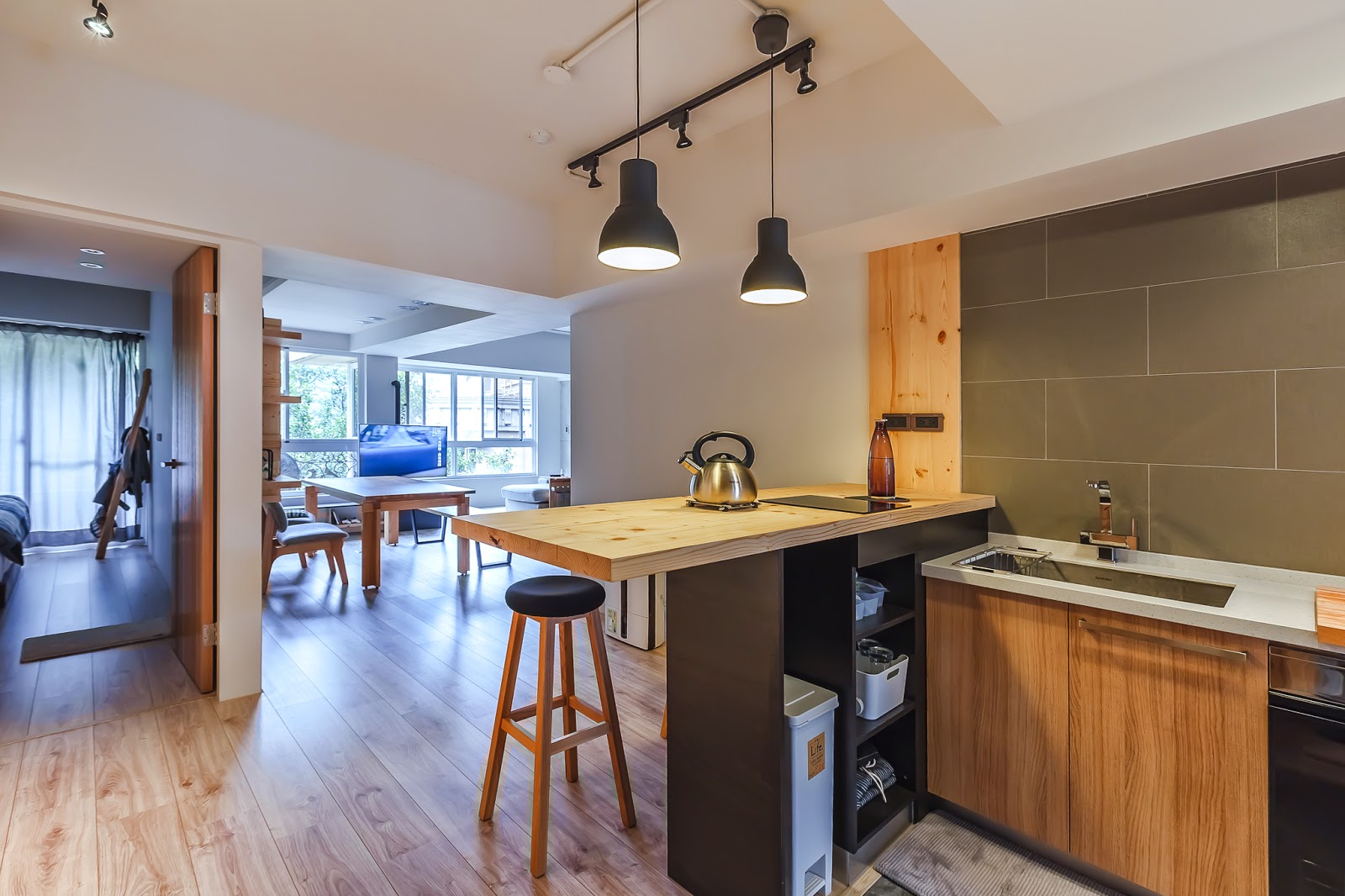 主要建材:鋼刷木皮、實木、不銹鋼、進口超耐磨木地板、馬賽克磁磚、圖腃磁磚