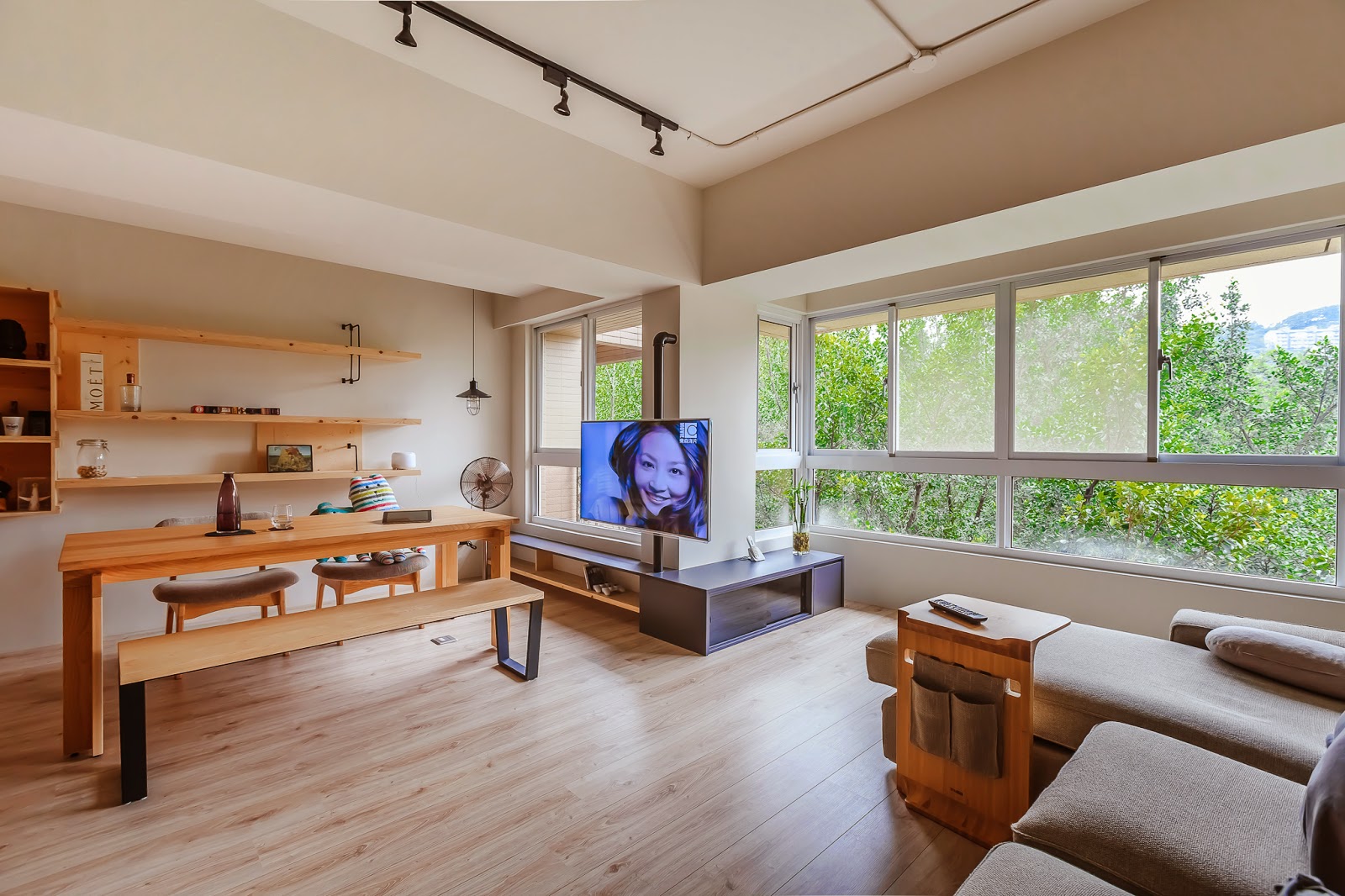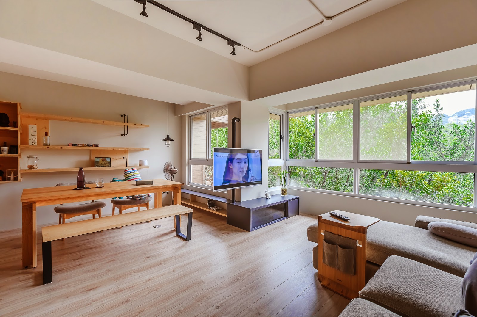 19坪空間,溫暖的陽光斜射進屋裡 |
