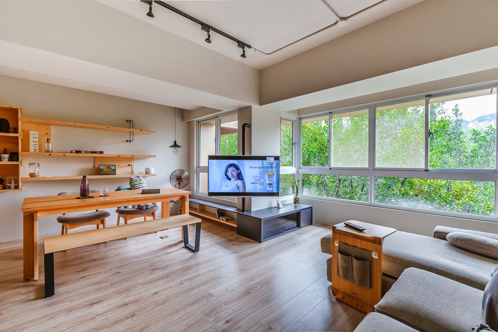 旋轉式的電視 在客廳或在餐廳(閱讀空間)都可舒適的觀看 |