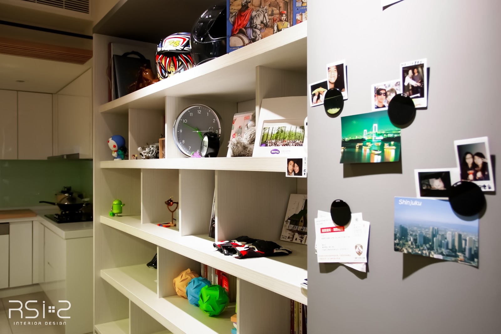 | 柱子另一邊也兼具開放式收納櫃的功能 |