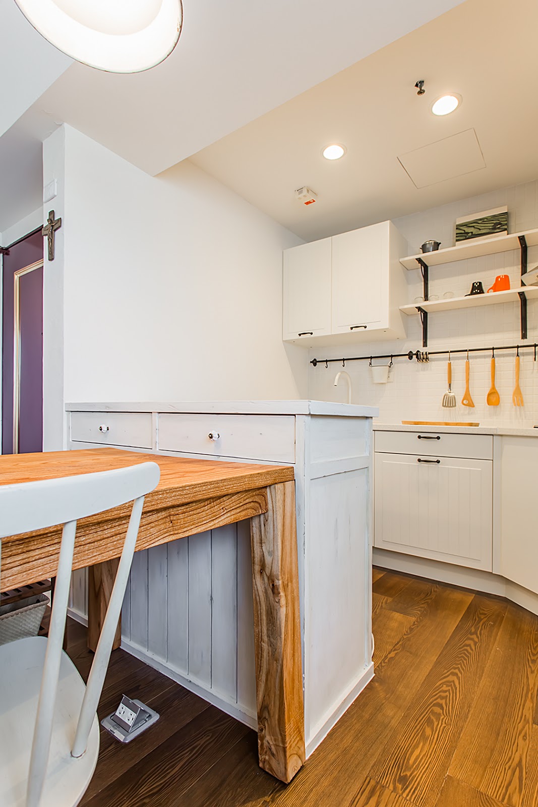 打掉廚房的牆壁,讓小空間能夠更開放出來,整個空間就不會這麼狹小壅擠。